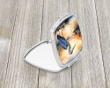 Compact Mirror featuring breed specific Blue Heron artwork. Introducing our Square Compact Mirror, a blend of elegance, functionality, and compactness, perfect for on-the-go touch-ups. This Silvertone metal mirror, with dimensions of 2.75 inches x 3 inches x .3 inches, fits effortlessly into your purse, handbag, or pocket, ensuring that you can check your appearance anytime, anywhere. Our compact mirror stands out with its eye-catching artwork on the front, adding a dash of style to this practical accessory. It is more than just a mirror; it's a statement piece that reflects your personality and aesthetic. When opened, this compact reveals two mirrors inside, doubling your perspective for precise touch-ups. The Silvertone metal construction ensures durability while maintaining a lightweight feel, making it an ideal everyday carry item. Whether you're rushing to a meeting, prepping for a dinner date, or just need a quick check on your look, our Square Compact Mirror is your reliable companion. Experience the perfect blend of style and practicality with this must-have accessory.