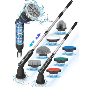 Electric Spin Scrubber, 2024 New Super Quiet Power Cleaning Brush For Bathroom Floor Tile With Long Handle, Cordless Shower Brush With 7 Replaceable B (Color: Black)