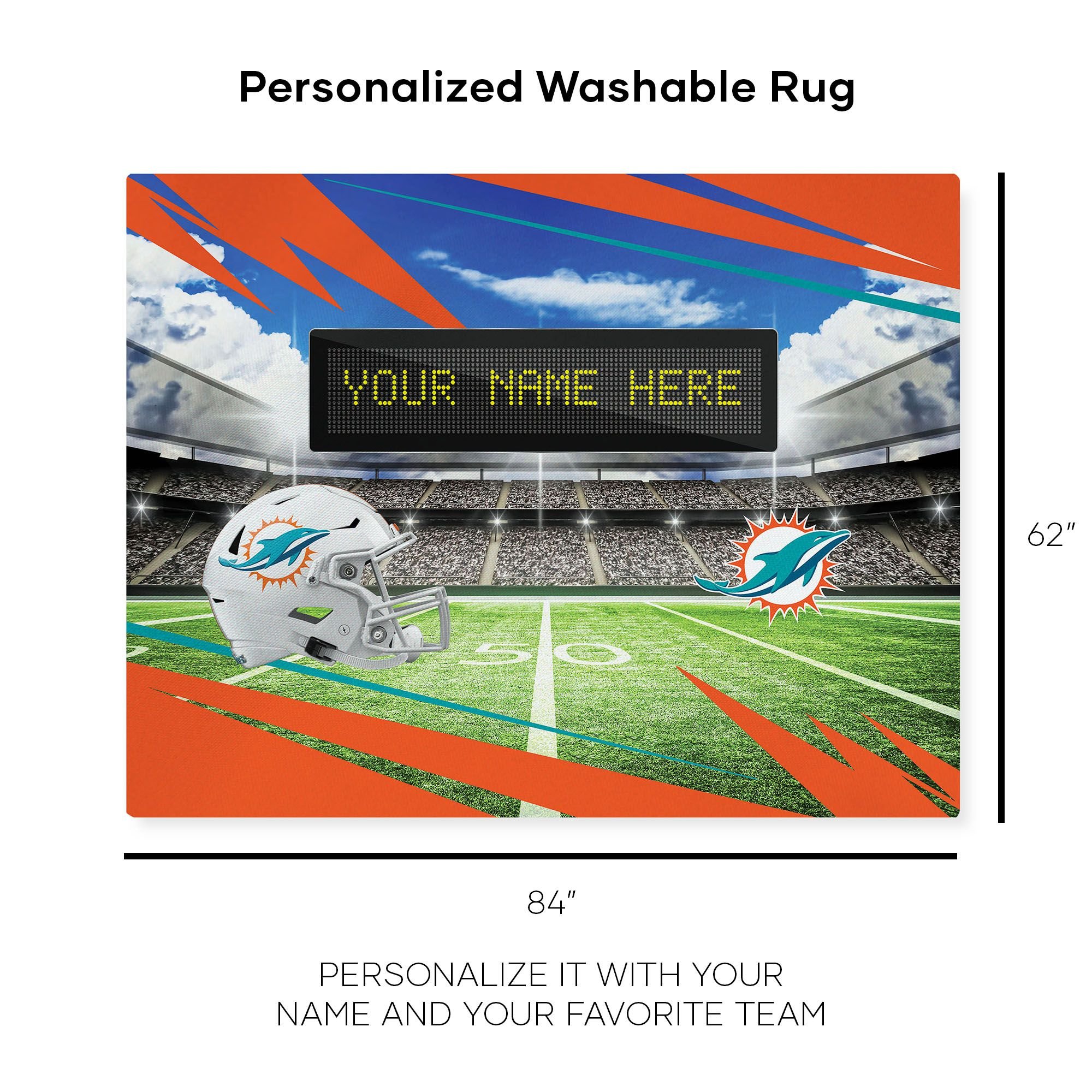 [Personalization Only] Official NFL Dolphins - 62" x 84" Personalized Washable Rug